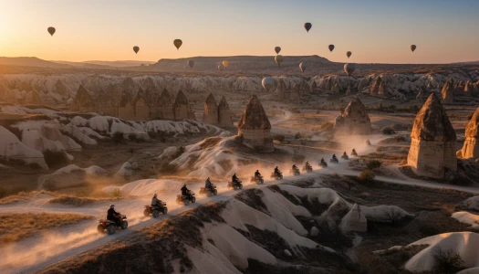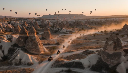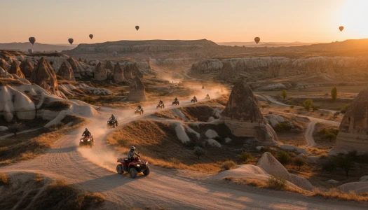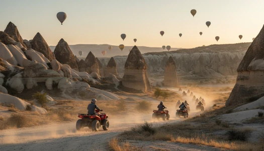 Bu vadilerde, kaya oluşumlarının arasından geçerken kendinizi bir başka dünyanın içindeymiş gibi hissedeceksiniz. Her bir virajda farklı bir manzarayla karşılaşmanız ve doğanın sunduğu muhteşem görüntüleri gözlemlemeniz mümkün. ATV ile gezdiğiniz bu bölgelerde, peri bacalarının etrafında dolanırken doğal güzelliklerin yanı sıra, tarih kokan yapılarla da karşılaşacaksınız. Tur boyunca uzman rehberlerimiz, bölgenin tarihi ve kültürel zenginlikleri hakkında bilgiler vererek sizi daha da fazla bilgilendirecek. Gezmeye doyamayacağınız bu eşsiz Kapadokya turu, hem fotoğraf çekip anılar biriktirebileceğiniz hem de unutulmaz bir macera yaşamanız için tasarlandı. ATV sürüşünüz sırasında yaşayacağınız özgürlük hissi ve heyecan dolu anlar, bu turu hayatınızın en unutulmaz deneyimlerinden biri haline getirecek. Kapadokya'nın büyüleyici atmosferini, çarpıcı manzaralarını ve eşsiz doğasını keşfetmek için hazır mısınız? ATV turuna katılarak hem eğlenip hem de doğanın tadını çıkarmak için sizleri bekliyoruz. Unutulmaz bir deneyim yaşamak ve Kapadokya’yı bambaşka bir açıdan görmek için doğru adres tam burada!